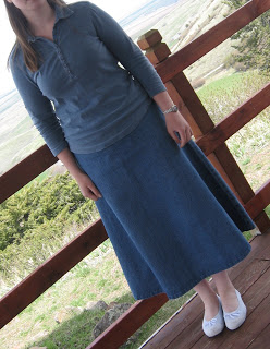 Tuesday I wore an Eddie Bauer polo shirt that I bought in the 70% off section with a denim skirt that I made ages ago and don’t think we even own the pattern anymore.:-)