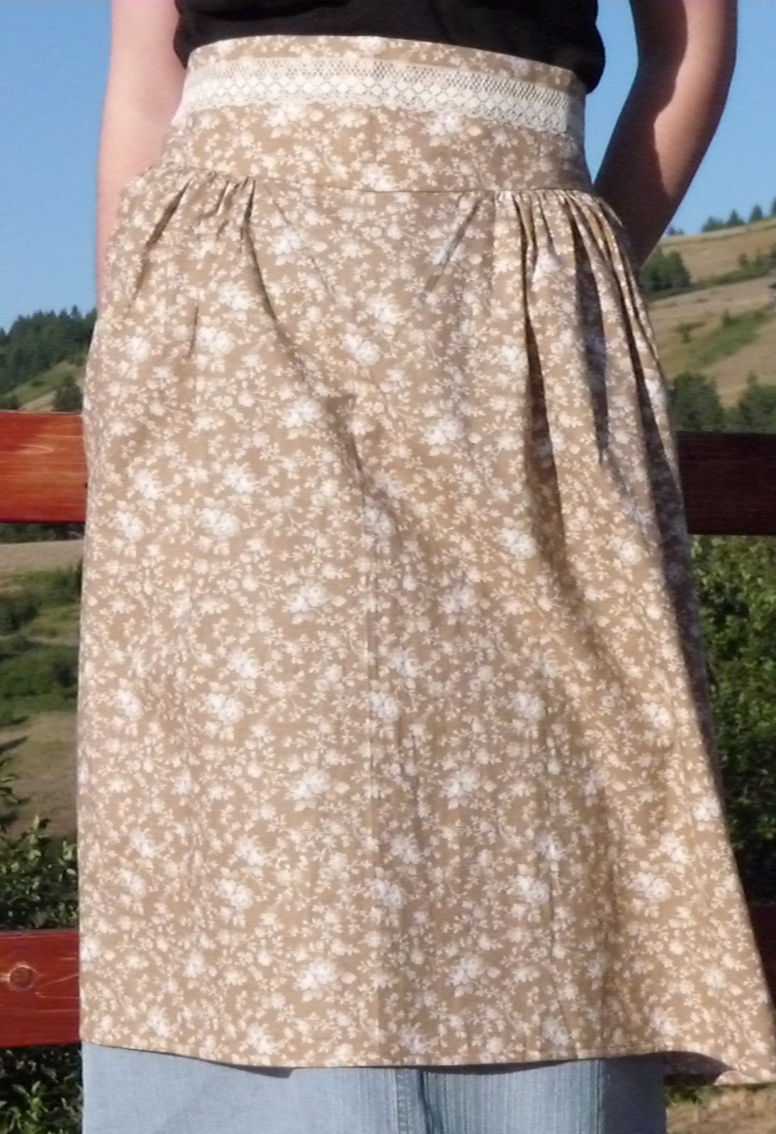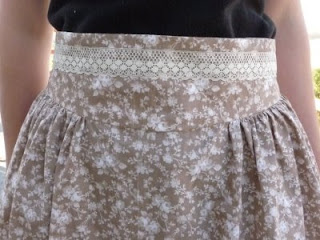 This was a fun project to make and so incredibly simple! All I did was draft a yoke pattern and then cut the skirt to fit the yoke, leaving enough excess to make some nice full gathers. Adding the vintage-looking lace I’ve had in my sewing box for ages gives it a nice touch, I think. 🙂