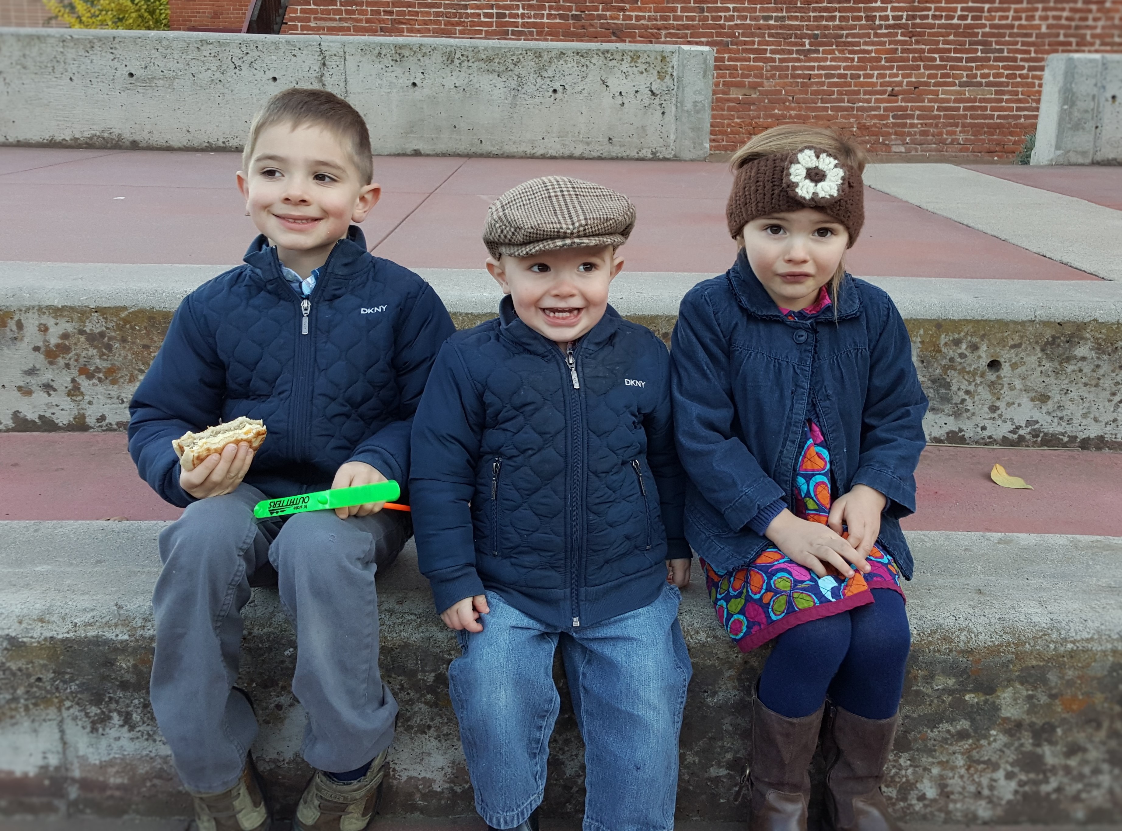 Fall is officially here! The weather today was gorgeous even if it did only reach the all-high temp of 52F. Still, I took the littles for a walk downtown including a visit to the library and a little bakery that sells cupcakes. They were their usual little selves and behaved, well, like children. 🙂 I managed to snap a couple pictures before Miss Meg started complaining that she was cold so we headed back to the truck to warm up. Next up was a Costco run. Pumpkin pie, anyone? 😉